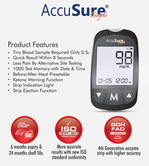 AccuSure boasts Autocode capabilities, requiring completely no cryptography for attention professionals and patients. What this implies is fewer steps throughout the testing method and no risk of false readings due to errors associated with incorrect coding. It is easy to use whereas providing safe, accurate, reliable and rapid results every time. AccuSure renders results in just 7 seconds, signifying the most rapid testing procedure attainable. With testing this fast and simple, you’ll expect the least interference together with your daily routine and also the ability to induce back to doing the things you like to do! And AccuSure comes with a lifetime warranty for complete peace of mind.